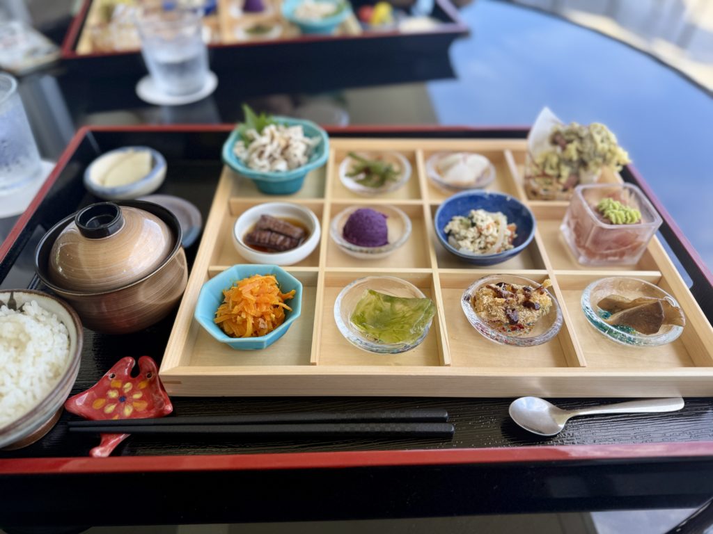 その日に仕入れた地元沖縄の新鮮な食材をアレンジした料理を少しずつ味わえる「十八願御膳